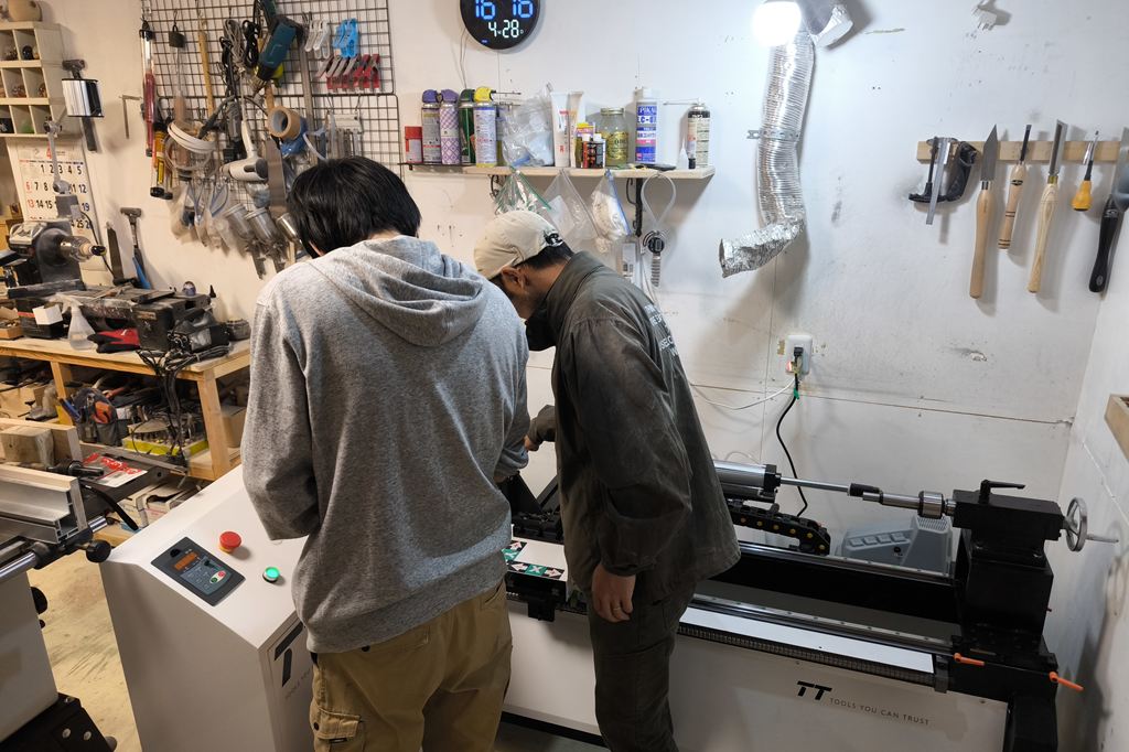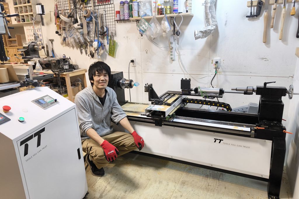 発注から4か月経った4月末。m.a. woodさんの工房にCNC木工旋盤 TT525 テールストックオプションが納品されました。今回m.a. woodさんがテールストックオプションを選択されたのは、将来的な作品レパートリーの拡充を見越してでした。