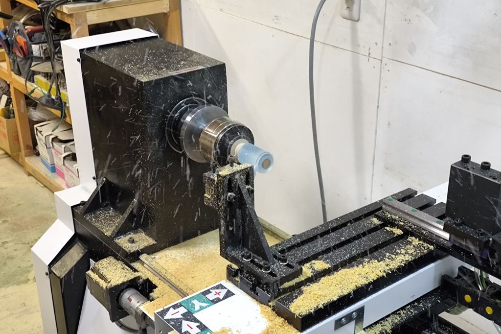 そう話すm.a. woodさんは、SNSで見かけたCNC木工旋盤に興味を抱き、すぐにツバキラボに連絡してきてくださいました。そして、ツバキラボの工房で実機を見て、発注を即決します。
