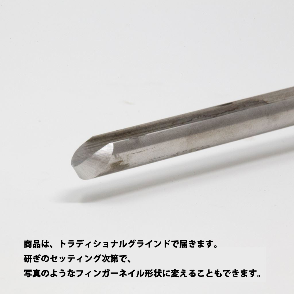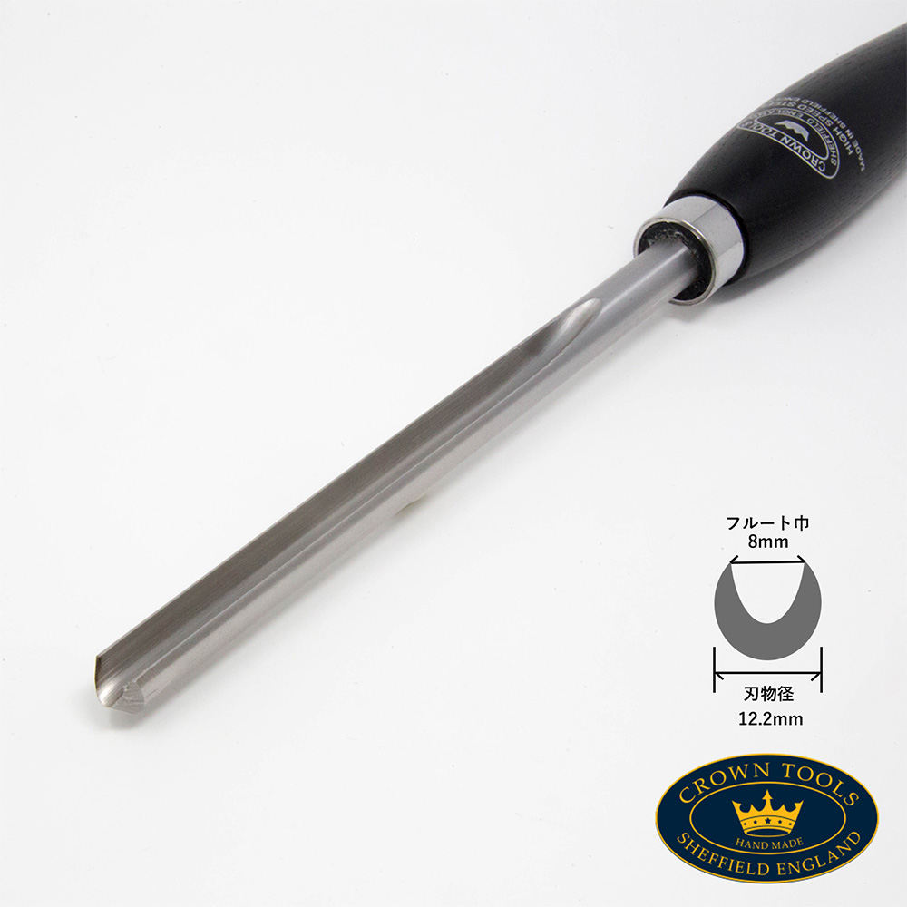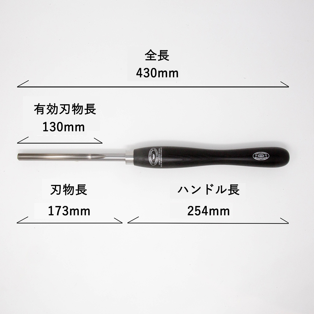 | 実寸サイズ | 刃物径: 12.2mm フルート巾:8mm 刃物長: 173mm (有効刃物長:130mm) ハンドル長:254mm 全長: 430mm ※有効刃物長とは、刃物長のうちの溝(フルート)の長さ ※商品は、トラディショナルグラインドです。届いてから、ご自身の好きな形状・角度で研ぎなおしをしてご利用ください。 |