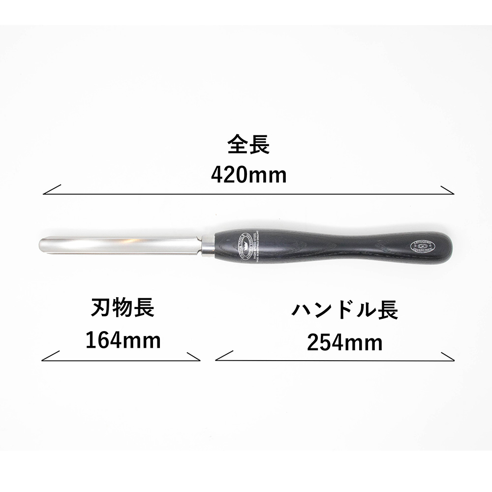 | 実寸サイズ | 刃物径: 19mm フルート巾:13.4mm 刃物長: 164mm ハンドル長:254mm 全長: 420mm |