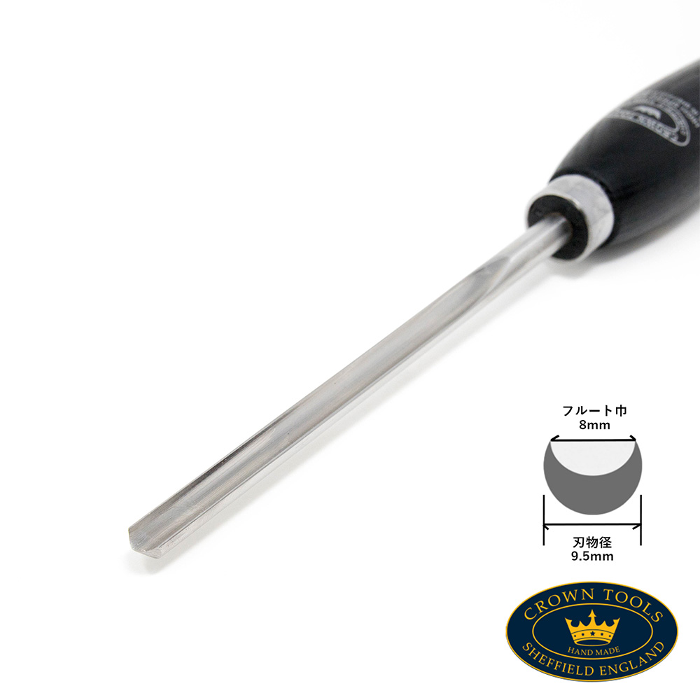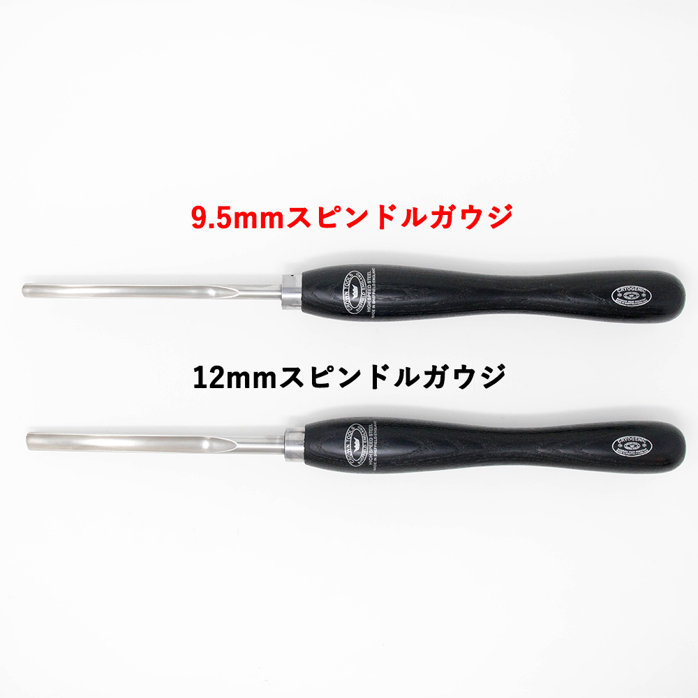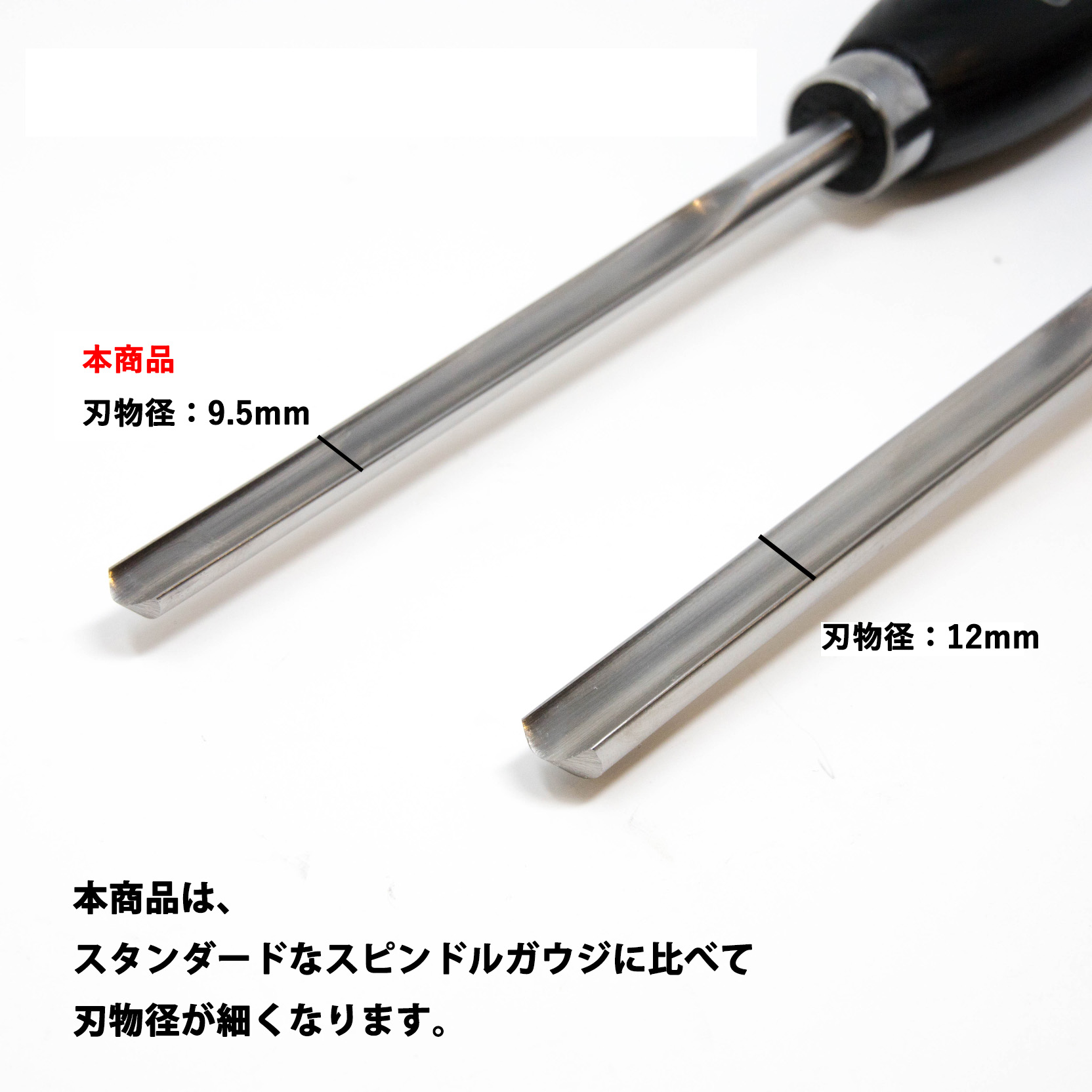 ※標準的なスピンドルガウジの刃物径が12mmに対して、本商品は9.5mmです。より細やかな作品作りに重宝する細身のスピンドルガウジです。