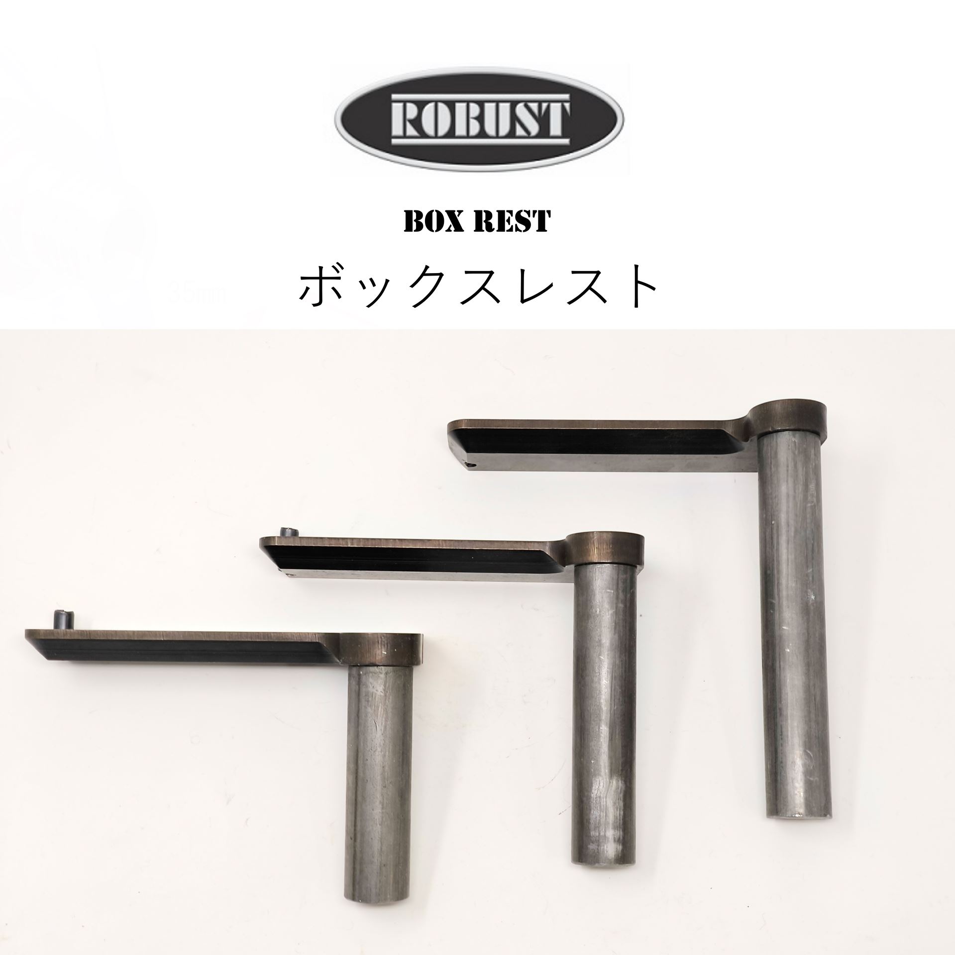 Robustのボックス・レストは、レーザーカットにより正確に切り出された厚さ約13mmの頑丈なスチールで作られています。
