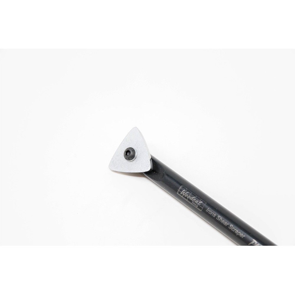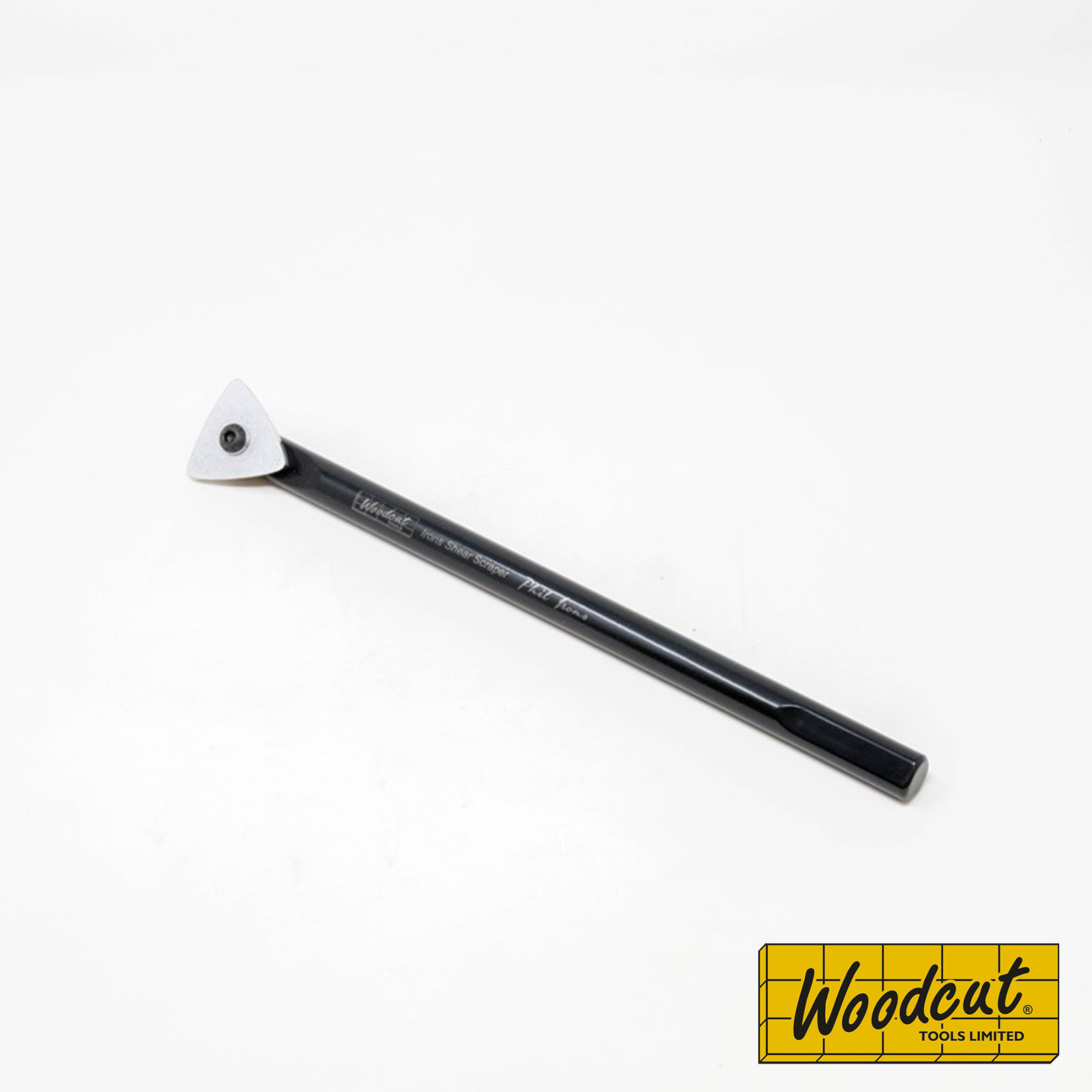 木工旋盤で通常使用するスクレーパーはハンドルを握り、金属のバーの先端を材料に当てるため、慣れないうちはキャッチを起こしやすいなど扱いに難があります。