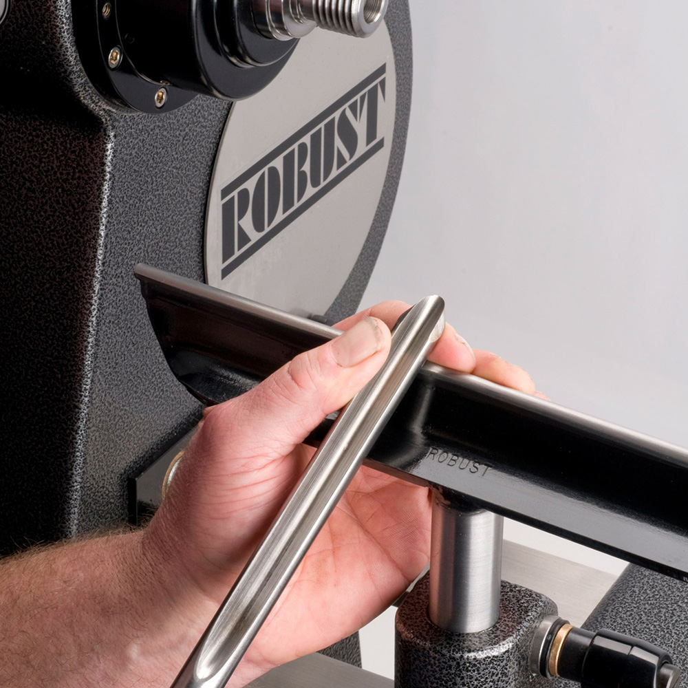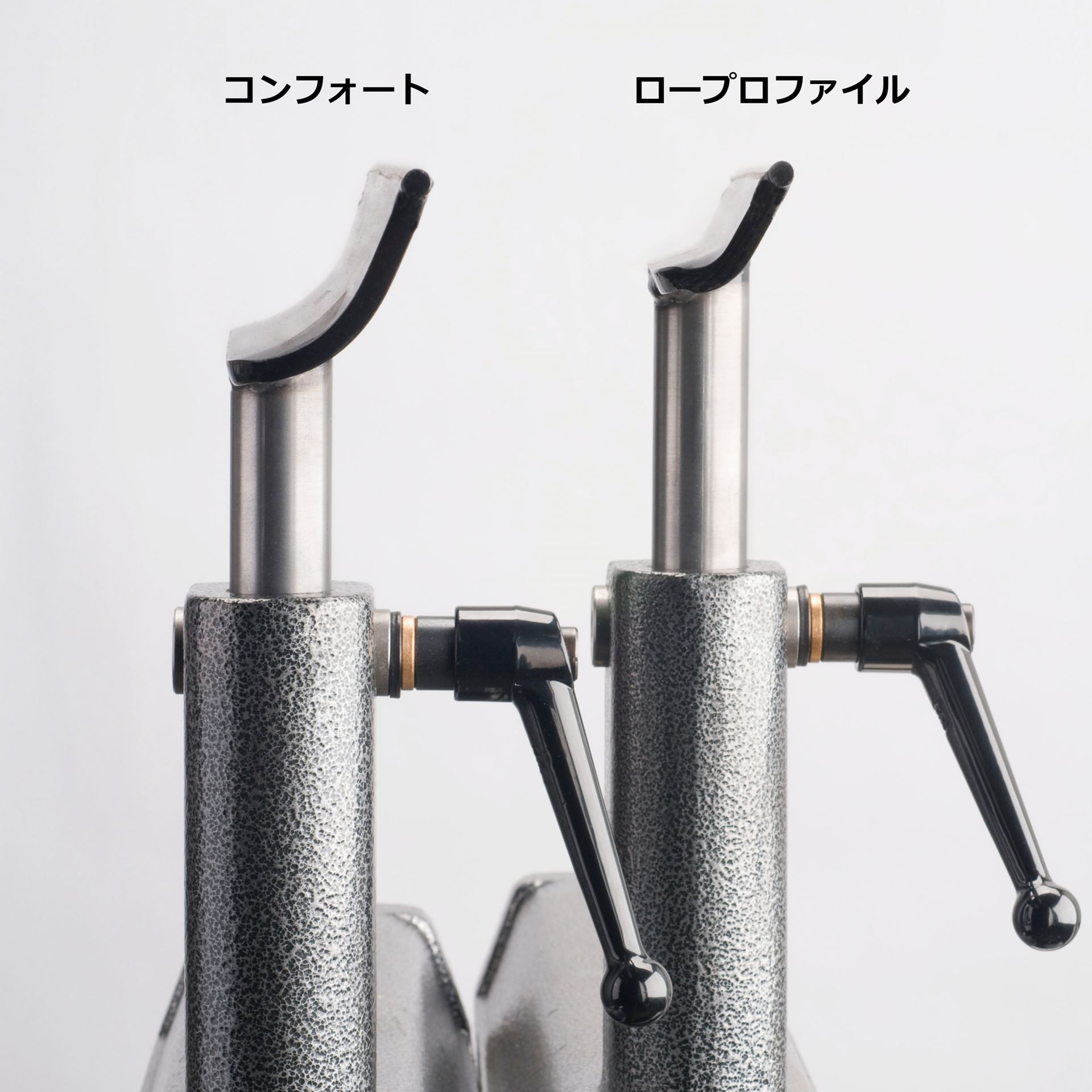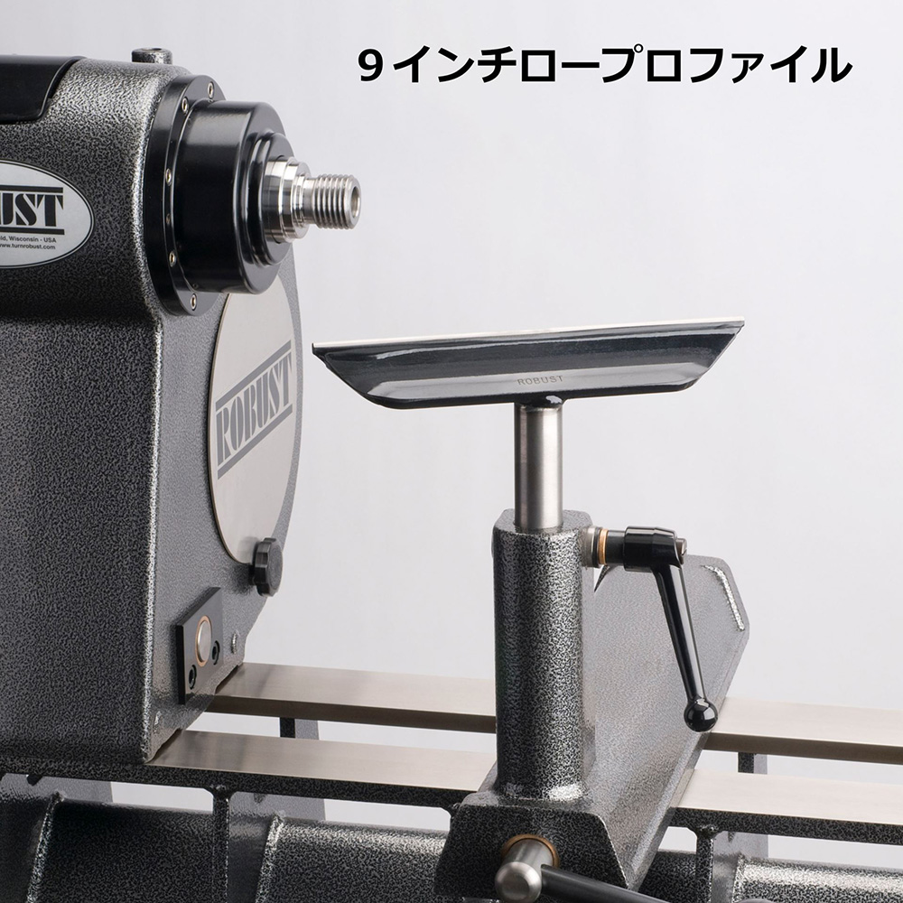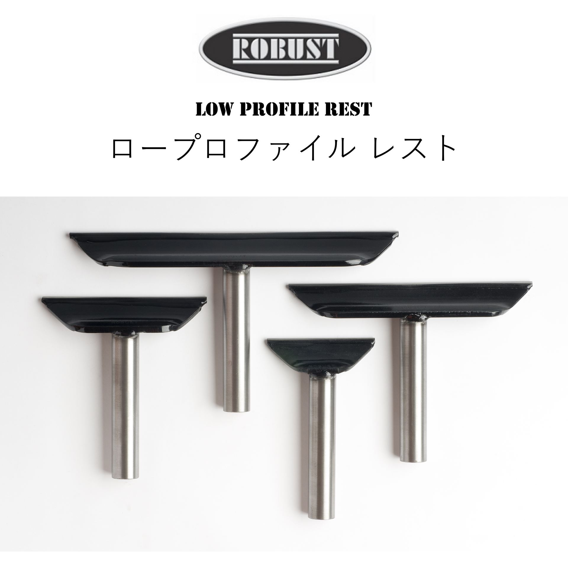 ロープロファイルレストは、ツールレストの下から手を巻きつけて刃物を保持するスタイルに適しており、特にスピンドルターニングやペンターニングの際に有効です。下から回した手で材料を支えブレを抑制しながら削ることも可能です。