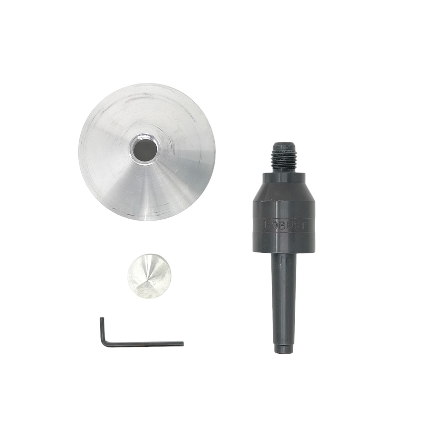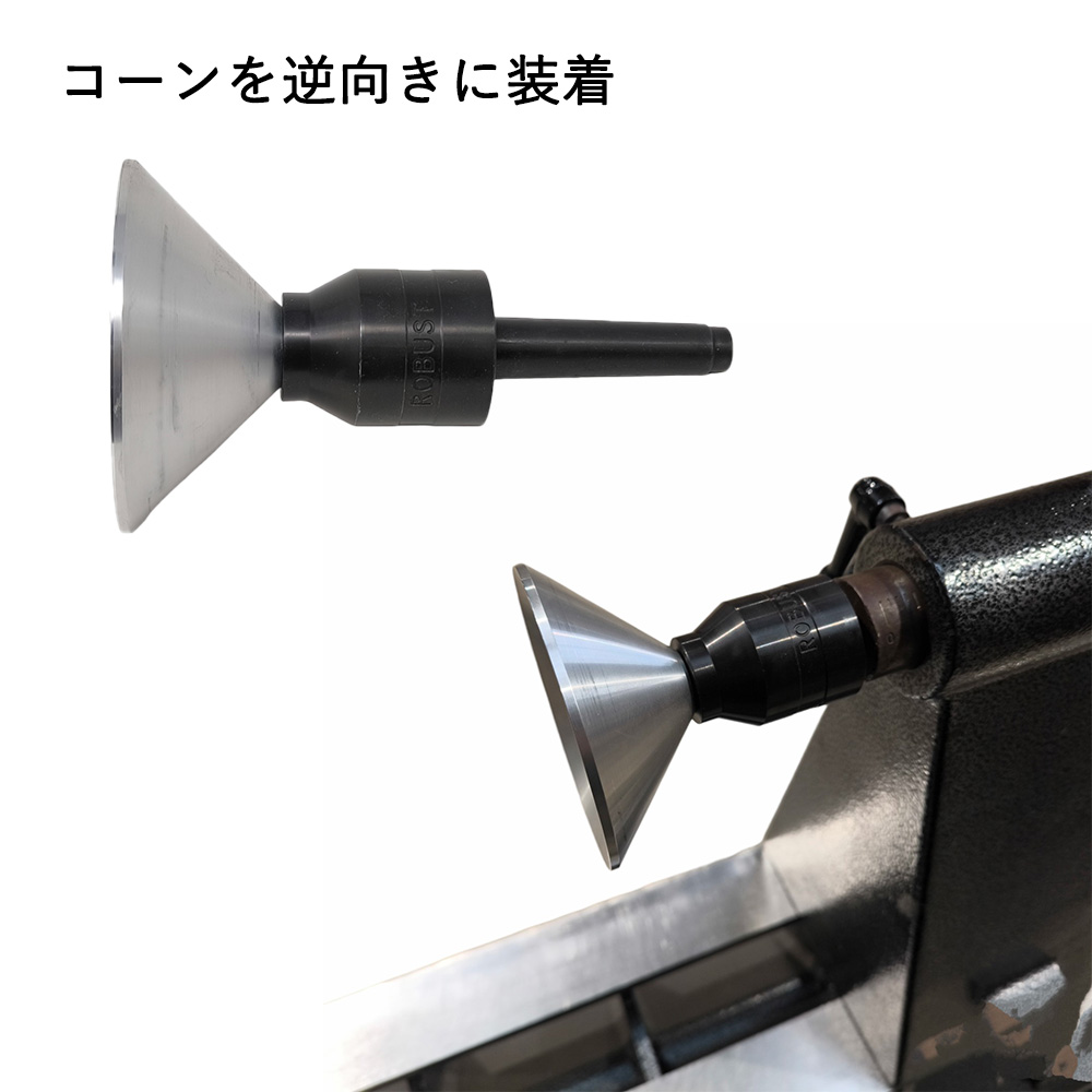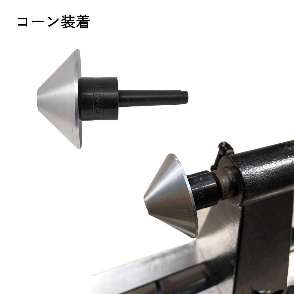 コーン・セットは、直径1/25″のアルミ製ポイントとリバーシブルの100mmコーンで構成されています。 このセットは、3/4インチ-10tpiの他社製センターにも使えます。