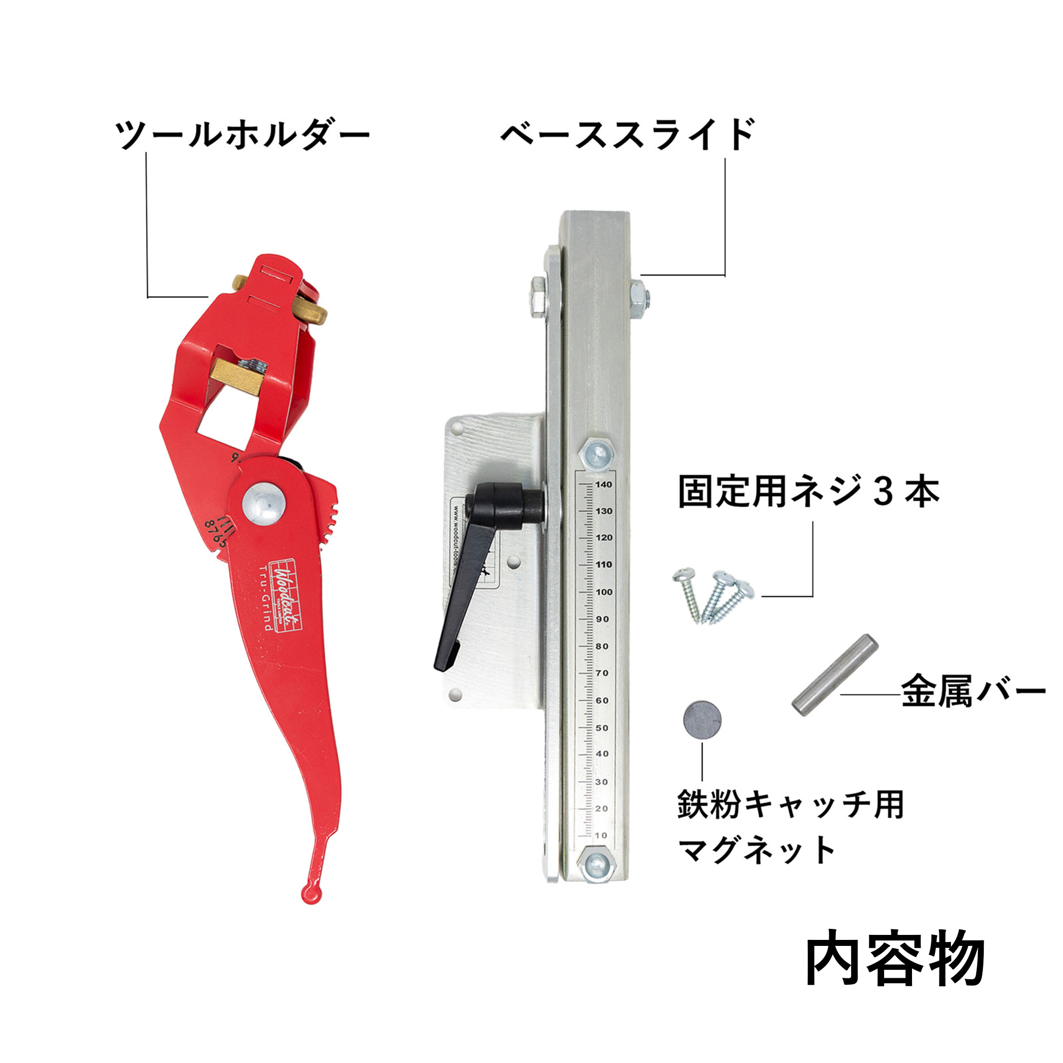 ツールホルダーとベーススライドのセットで研げる刃物の幅も広くとてもコスパがいいと感じました。