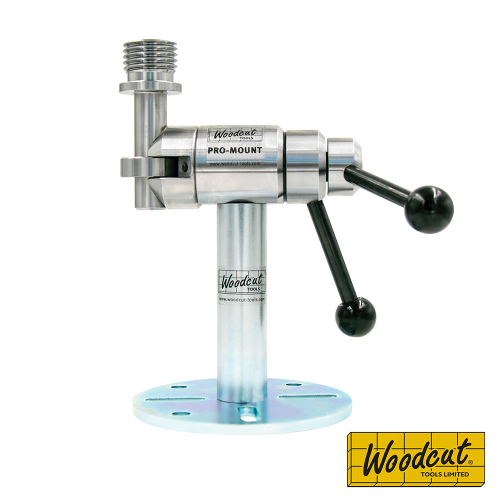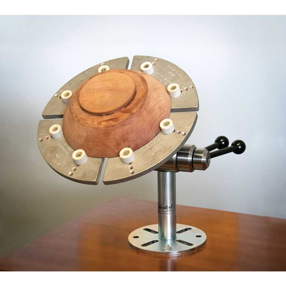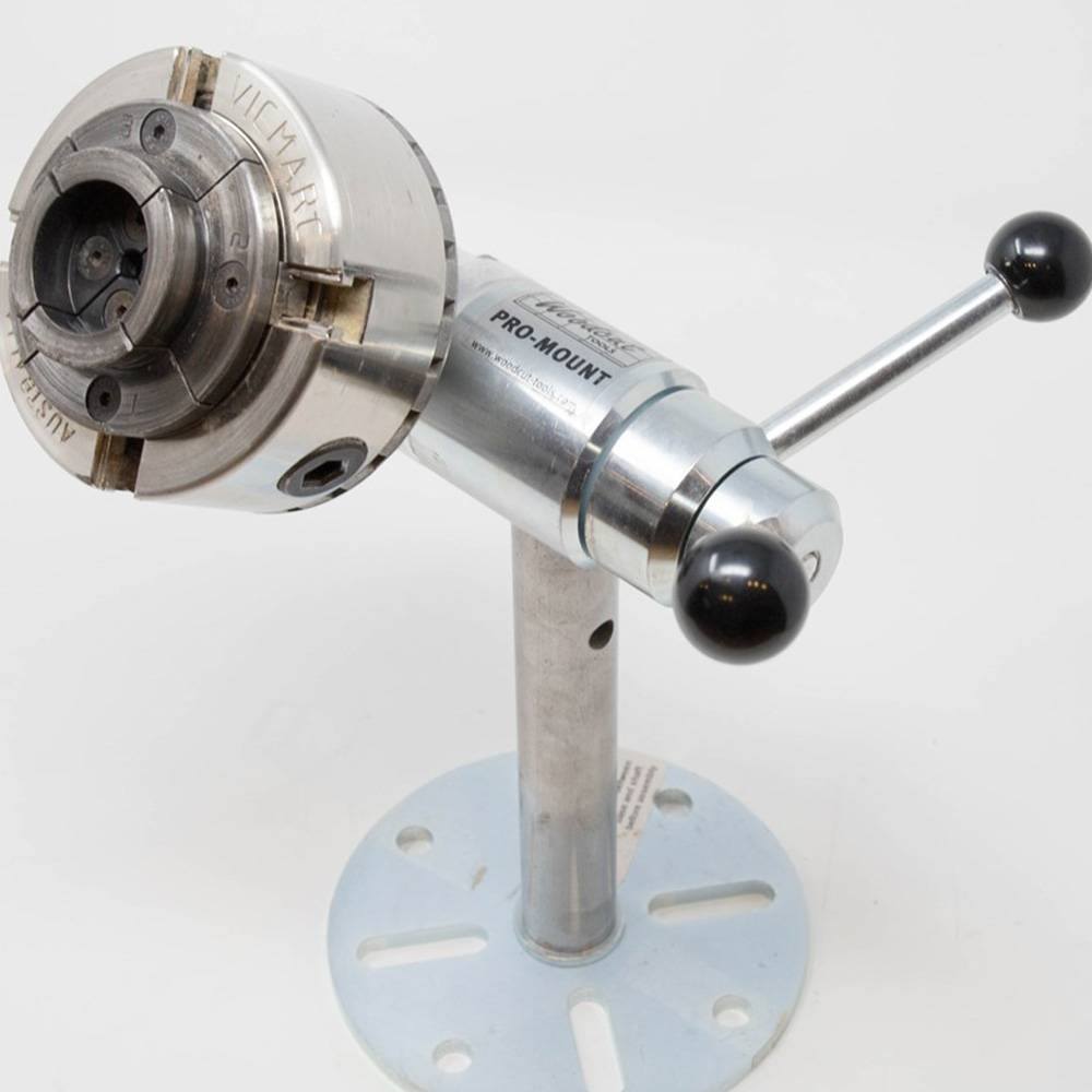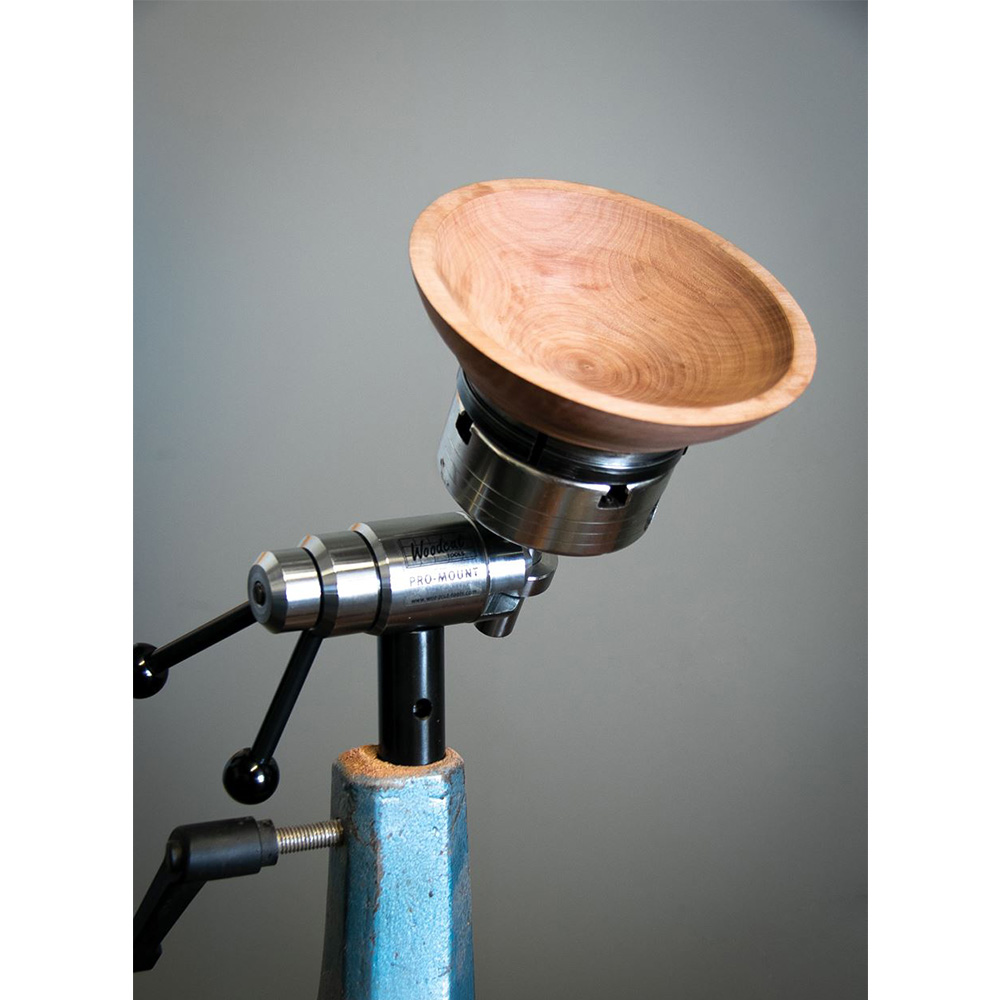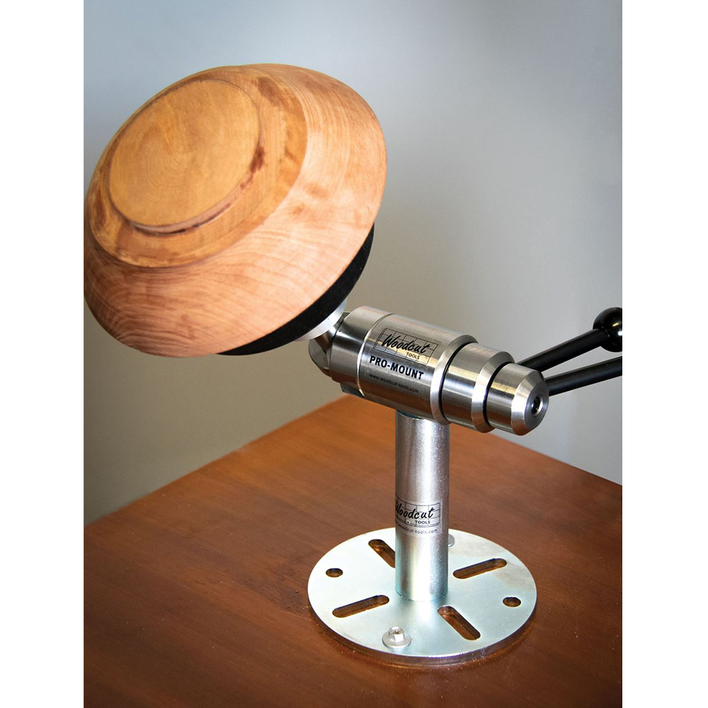 Woodcut社のPro-Mountは、木工旋盤で作品を仕上げた後、作品をチャックにつかんだまま彫刻や着色などの手作業がしやすいように開発された専用のマウントスタンドです。