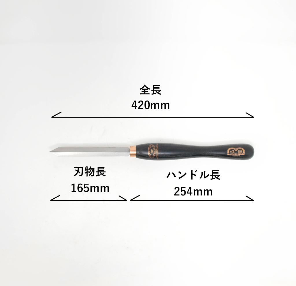 | 実寸サイズ | 刃物巾: 19mm 刃物厚: 5mm 刃物長: 165mm ハンドル長:254mm 全長: 420mm ※実寸サイズは個体によってばらつきがございます。 |