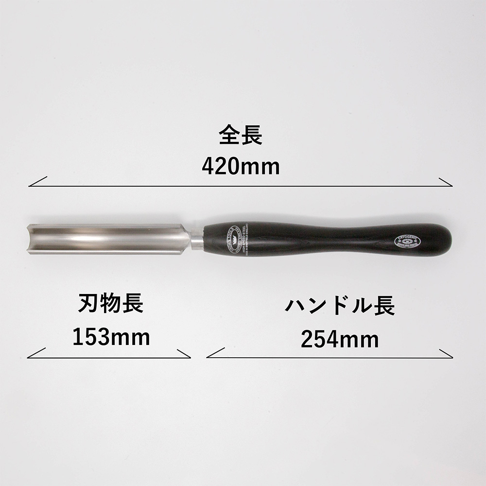 | 実寸サイズ | 刃物径: 30.5mm フルート巾:21mm 刃物長: 153mm ハンドル長:254mm 全長: 420mm |