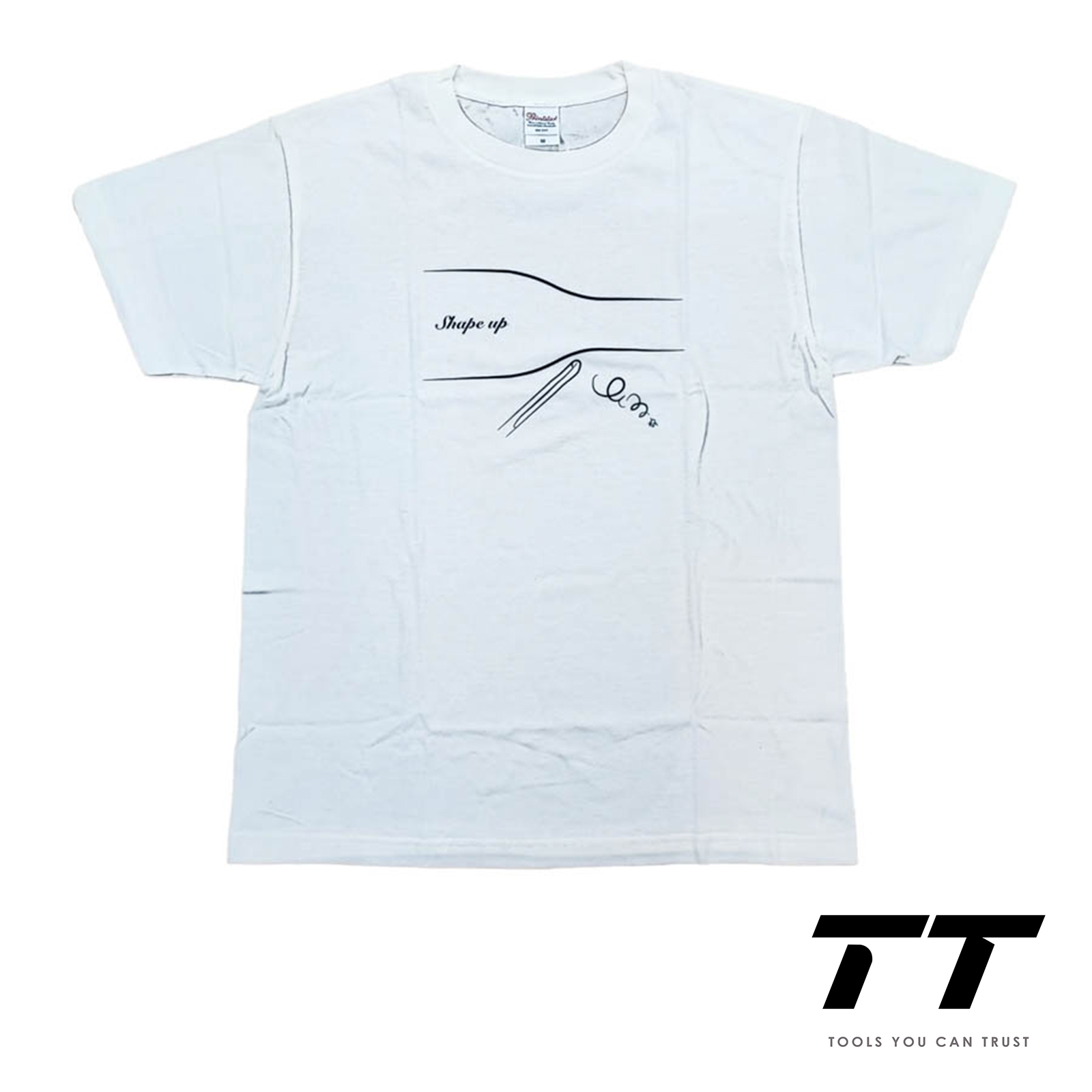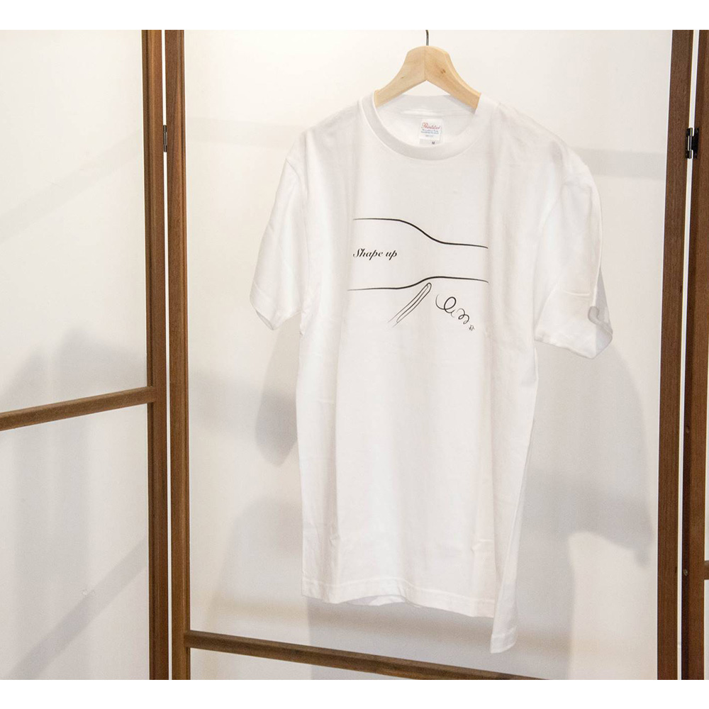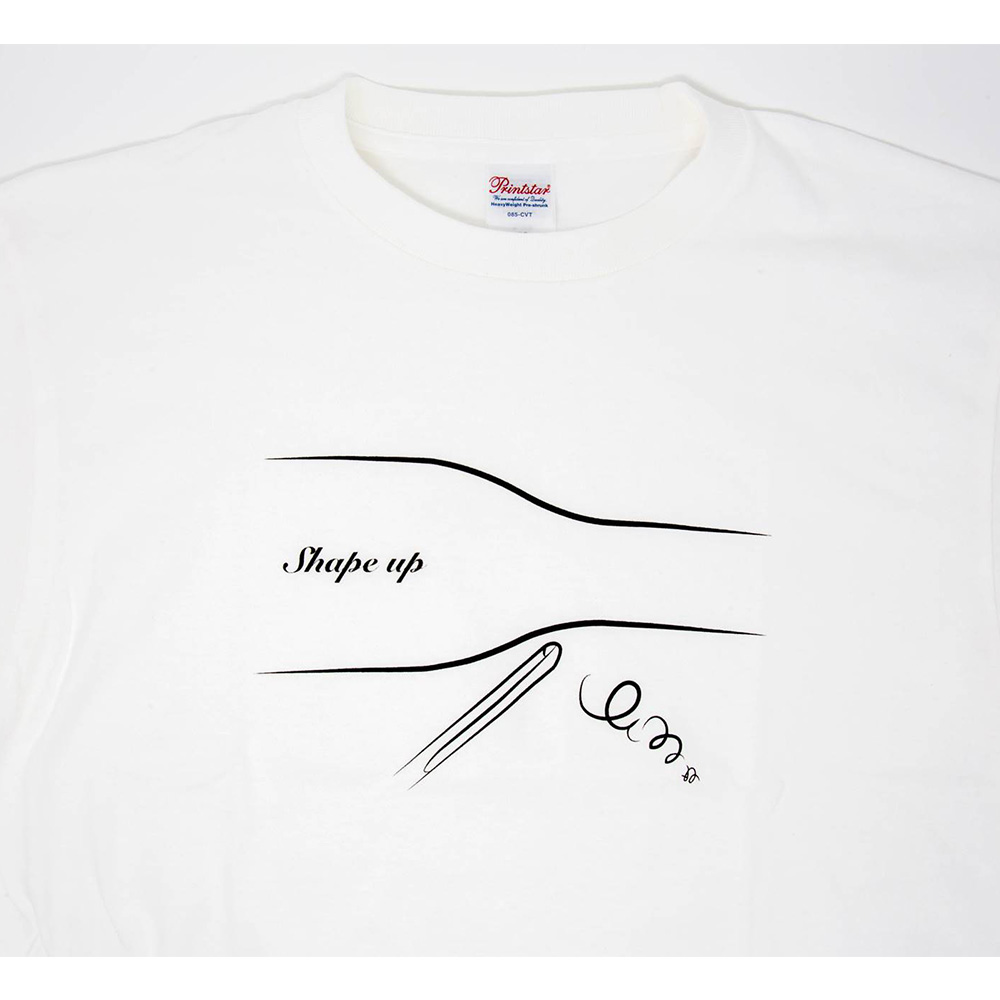 「アイデアをまとめる」「上達する」「調子が出る」といった幅広い意味を持つShape Upという言葉と、木工旋盤の作業イメージを合わせたデザインのTシャツです。