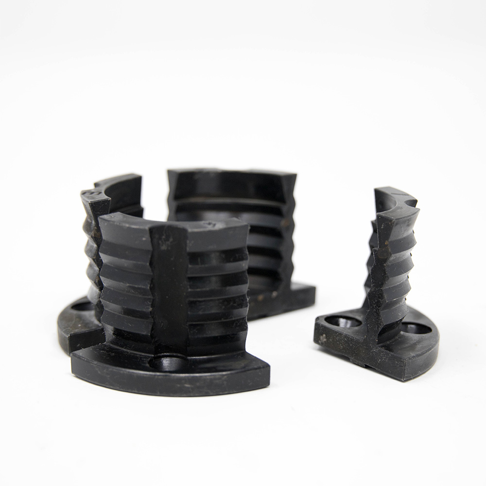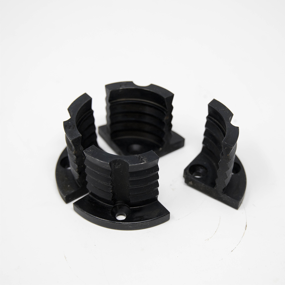 シャークジョーは、外側、内側両方がギザギザの形状をしており、これが従来のジョーに比べ、筒状、棒状の材料の固定を強固にします。